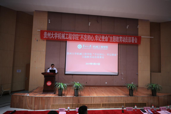 2019年9月25日,williamhill英国官网委“不忘初心,牢记使命”主题教育部署会在机械楼圆形报告顺利召开。校巡回指导小组四组组长许道云、成员李臣宇以及公司及现代制造重点实验室在家处级领导干部、公司党委委员、各党总支、党支部委员、全体师生党员参加了此次会议。会议由公司党委经理李少波主持。
