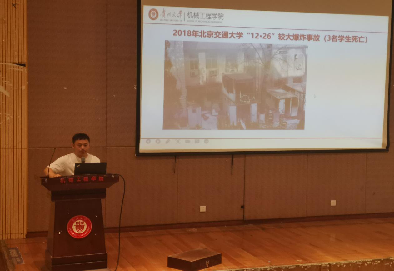 罗宁康通过列举高校多起实验室安全事故向同学们剖析事故引发原因,用“海恩法则”生动阐述了每一起严重事故发生前,都存在不同程度的事故隐患,强调事故的发生是量的积累,要将安全制度落到实处。