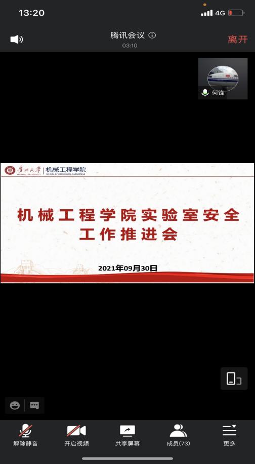 9月30日13:00,公司召开实验室安全工作线上专题推进会,党委书记安明刚、经理李少波、副书记廖烨、副经理杨勤、何锋出席会议,公司教师参加会议,会议由安明刚主持。会上,何锋强调安全是保障师生们生命以及日常学习的生活的重要前提,要进一步提高对安全工作重要性的认识,全院上下要树立整体安全观,不断加强安全宣传教育,做到人人皆知;不断加强安全制度建设,规范全院师生的安全行为,做到人人皆行;不断深入开展工作,加强安全排查力度,对风险管控做到精准识别。廖烨强调实验室安全无小事,一要提高政治站位,树立安全稳定是第一责任意识;二要落实责任,开展自查自排工作,消除安全隐患;三要完善制度,建立相关台账。李少波指出,公司要完善管理模式、提升服务能力,要层层签订安全责任书,安全责任落实到人,开展安全大检查。最后,安明刚强调要重新审视公司安全工作,并对公司安全工作提出更高要求,一要摸清底数,清楚楼层教室安排、物品存放以及物品性质,明确负责人;二要提升安全意识和责任意识,导师以及实验室管理人员要加强对员工和实验室的管理;三是强调国庆员工安全以及疫情防控相关要求。会后,学员班子成员对公司员工工作室、实验室开展安全大检查。