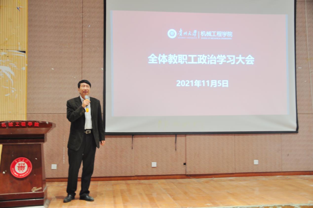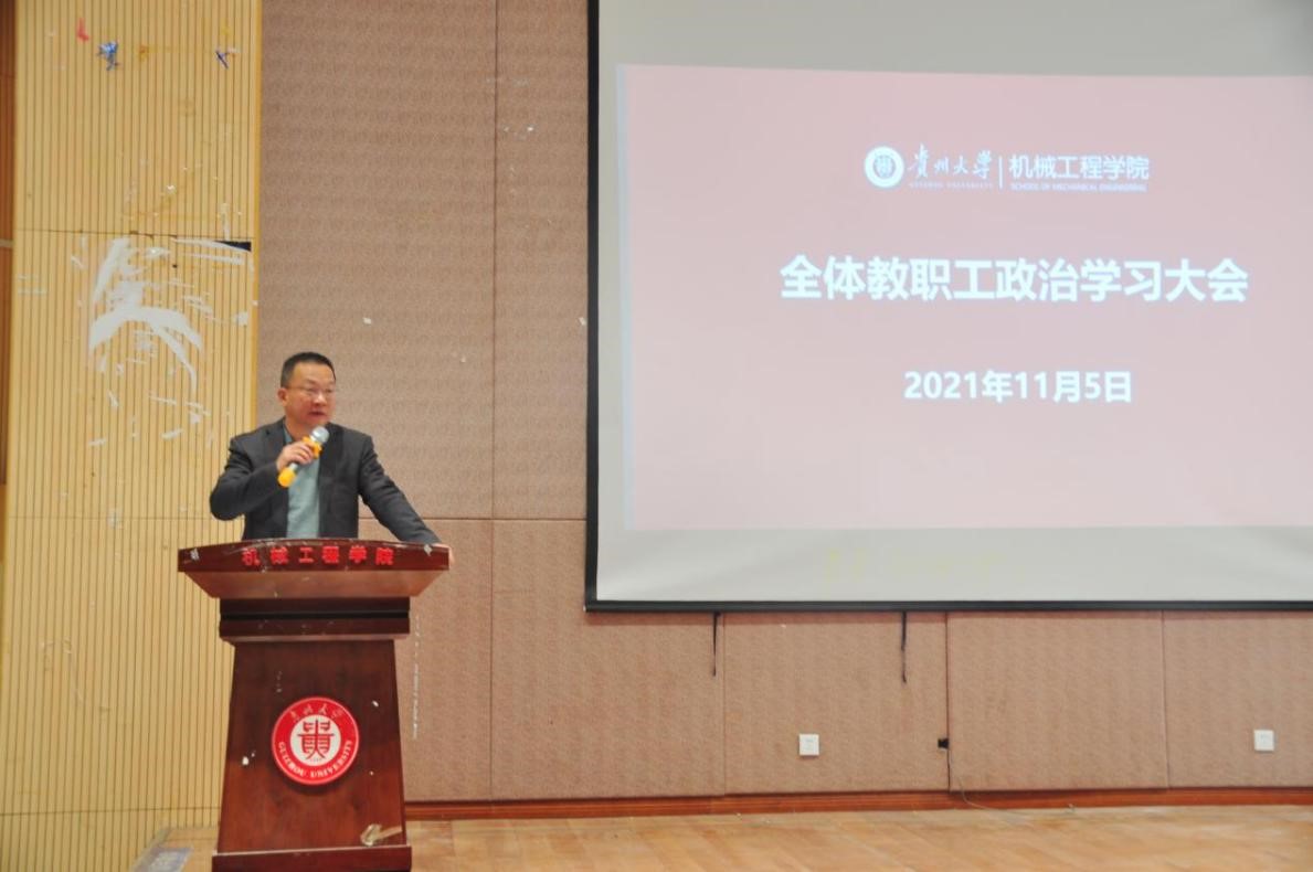 机械工程网站讯(记者 胡佳|摄影 胡佳)2021年11月 5日,williamhill英国官网于机械楼圆形报告厅召开教职工政治理论学习大会,公司党委书记安明刚、副经理何锋、杨勤出席会议,全院教职工参加会议。会议由安明刚主持。