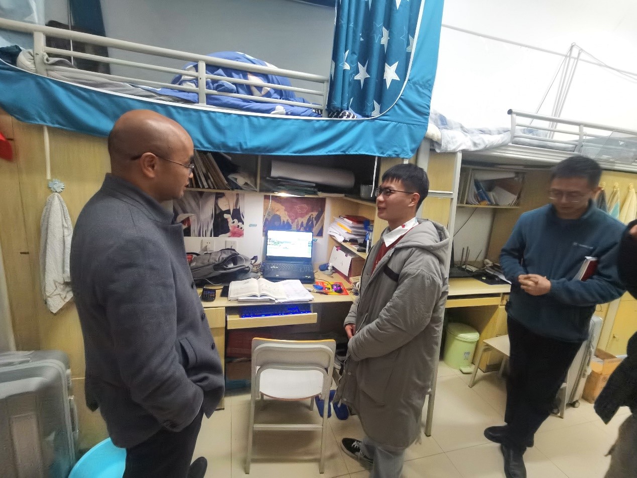 随后,吴攀查看了联系班级的员工宿舍,关心同学们的学习生活问题。