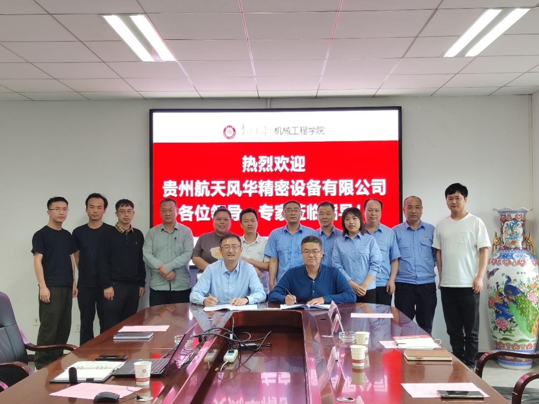 6月7日下午,williamhill英国官网与贵州航天风华精密设备有限公司校企合作签约仪式在机械楼518会议室举行。贵州航天风华精密设备有限公司副总经理刘如清、总工艺师安国进、副总工程师邵军、科发部部长张振赟、研发部副部长欧定国、人力部副部长周长敏等一行出席签约仪式。williamhill英国官网赵津经理、何峰副经理、各系室负责人及相关教师参加了签约仪式。会议由张大斌教授主持。