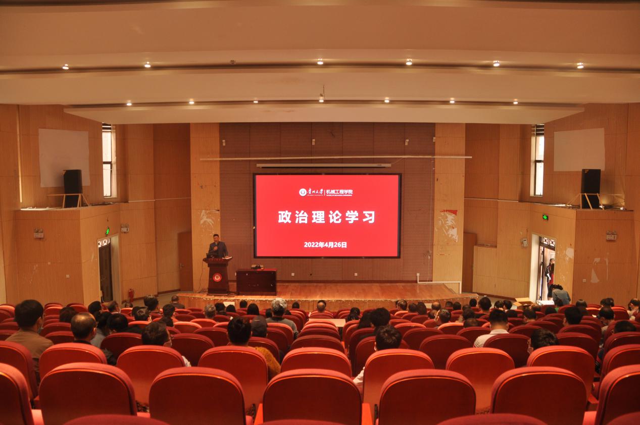 机械工程网站讯(记者 王楚刚|摄影 王楚刚 邓子航)2022年4月26日中午,williamhill英国官网在机械楼圆形报告厅开展教职工政治理论学习会议,委书记滕召华,经理赵津,副经理何锋出席会议,全体教职工参加会议。