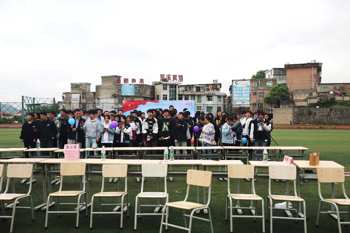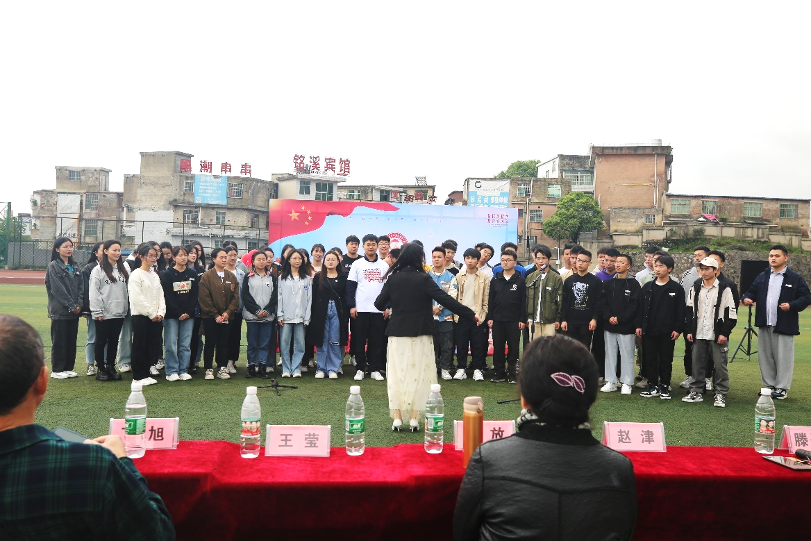 各年级同学们进行了才艺表演,老师们演唱《我和我亲爱的祖国》、《萱草花》等歌曲,迎来场下观众阵阵喝彩。随后,师生在足球场上进行你划我猜、“几碗牛肉面”、跑圈抱团、推小车接力赛、两人三足等趣味活动。