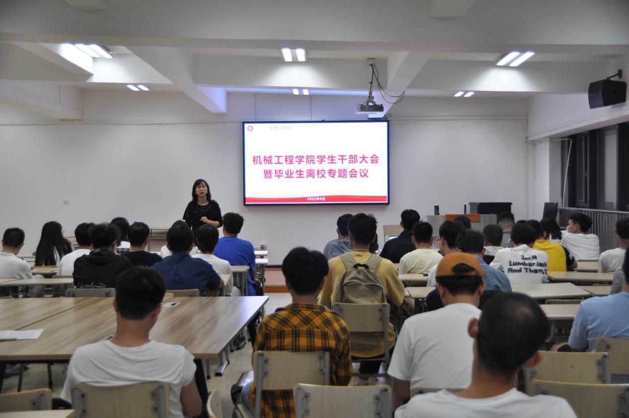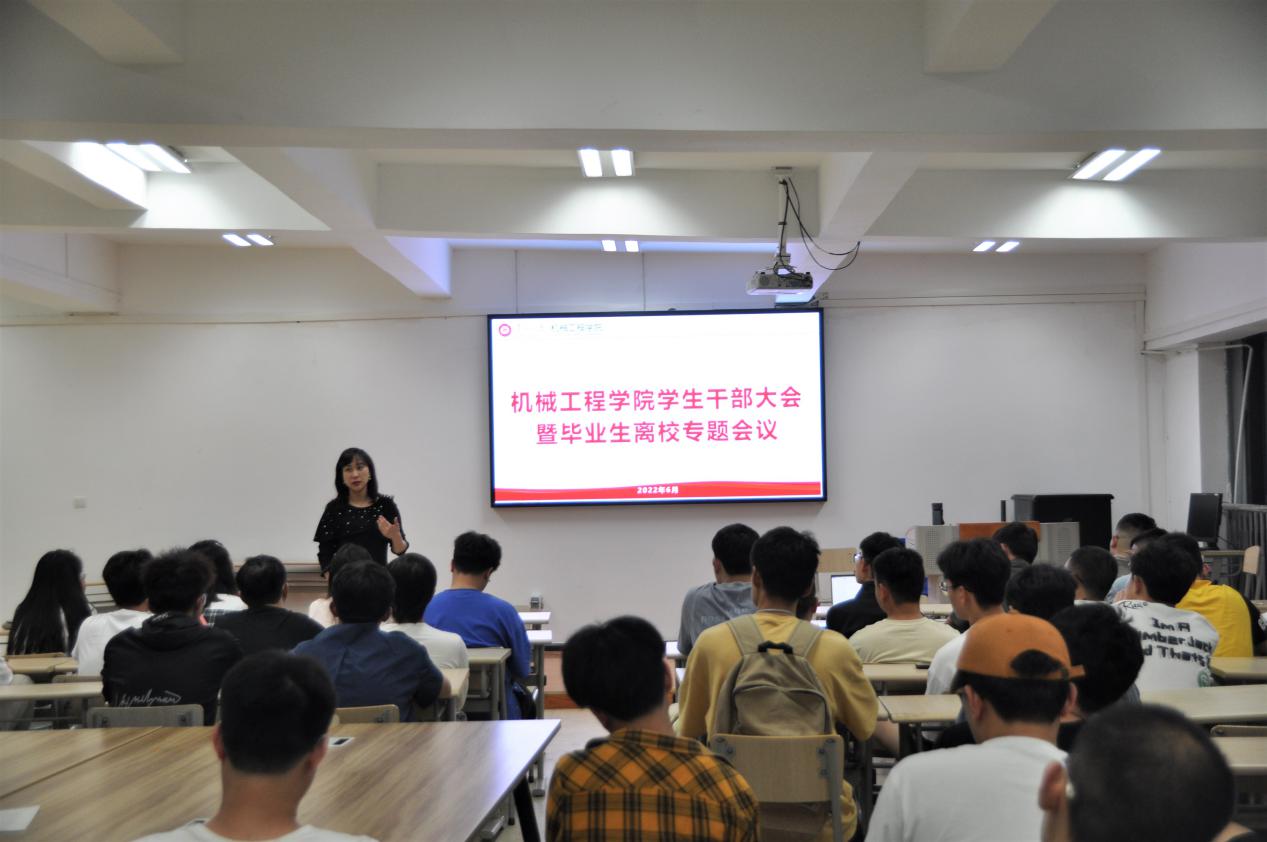 机械工程网站讯(记者 王楚刚|摄影 王楚刚)为做好毕业生文明离校各项工作,williamhill英国官网于2022年6月17日晚在机械楼327会议室召开研究生、本科生毕业班全体员工干部大会就毕业生文明离校等相关工作进行安排。委副书记廖烨出席会议,员工科老师、毕业班班干、研究生会、员工会干部参加会议。