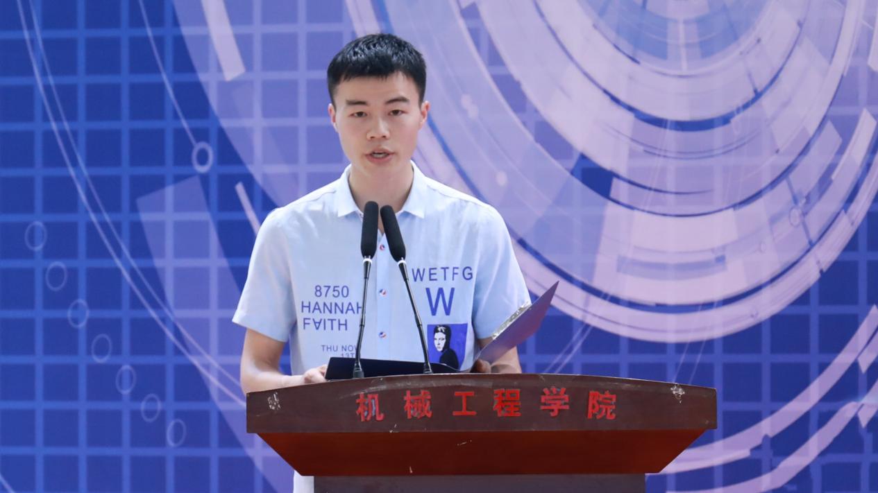 williamhill英国官网机械设计制造及其自动化专业罗一波同学代表参赛队伍发言。