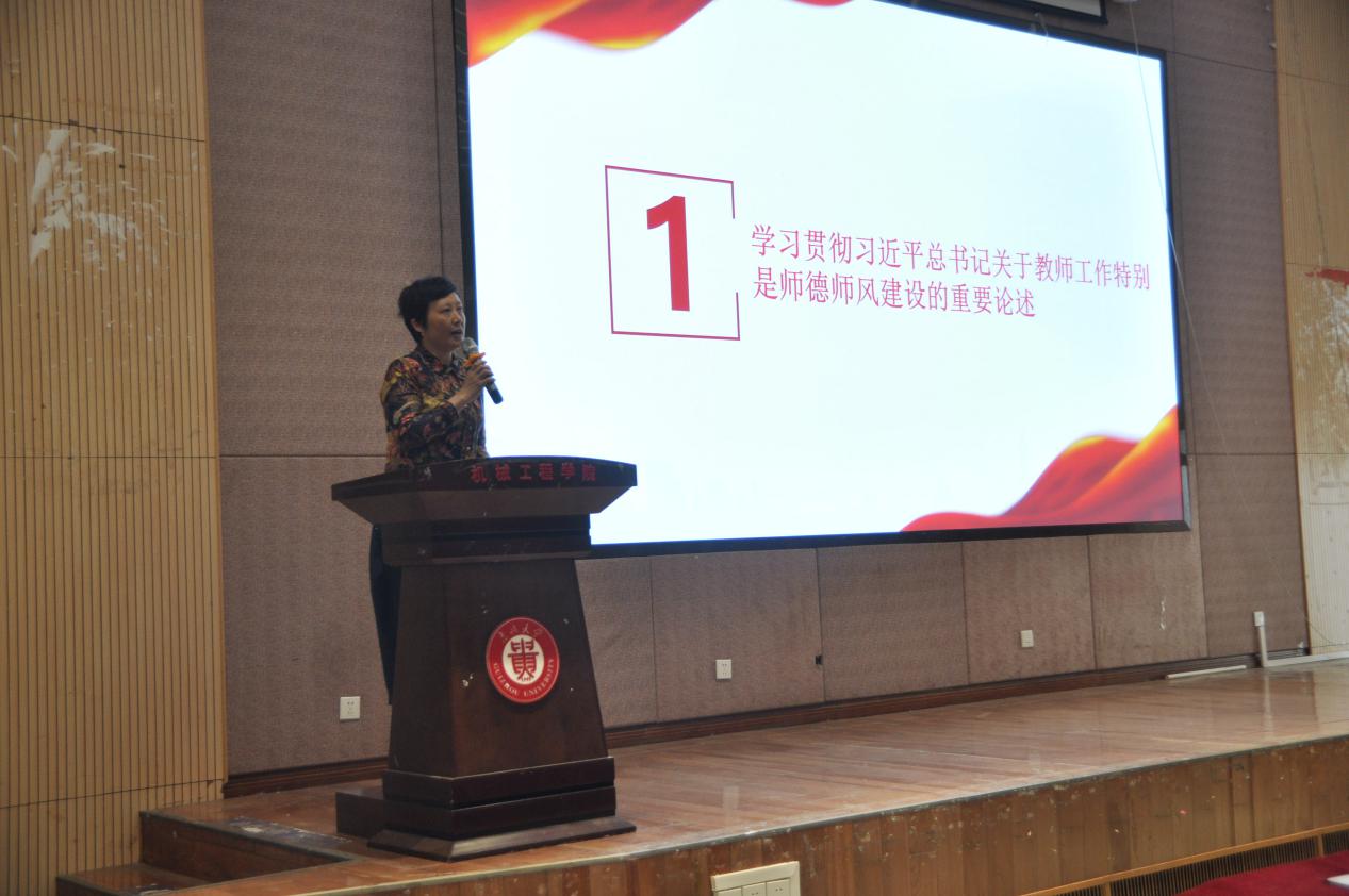 正处级组织员董蔚然同志领学习近平总书记关于教师师德师风建设的重要论述。在学习中,她强调师德师风建设关乎全面贯彻党的教育方针、关乎中国特色社会主义事业的薪火相传,强调师德师风建设对于构建高质量教育体系的重要意义。