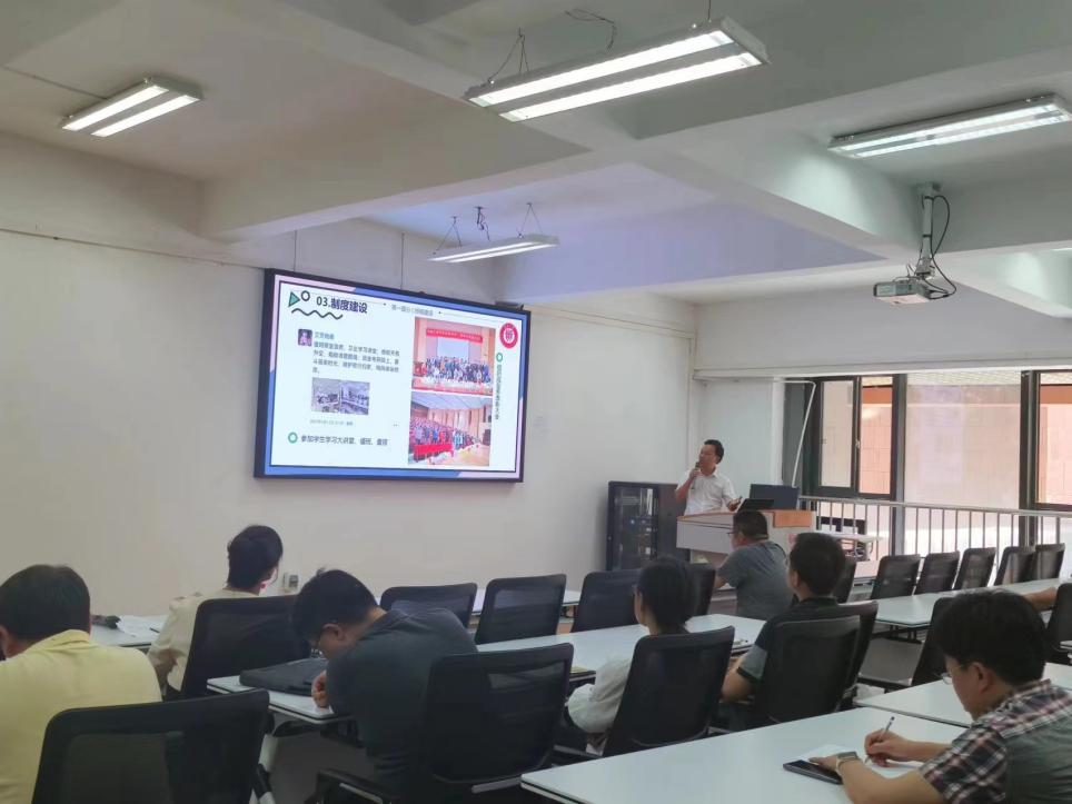 董蔚然从思想引导、学业指导、心理辅导、事务管理四个维度,介绍班主任工作职责以及指导如何做好班主任工作。员工科负责人王嘉斌为班主任们讲解省级、校级优秀班集体建设要求。随后,校级“最美班主任”获得者肖华强老师分享了个人工作及班级建设经验。