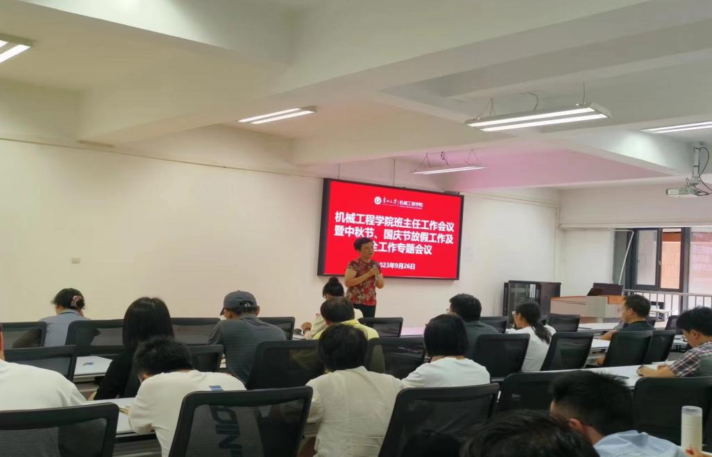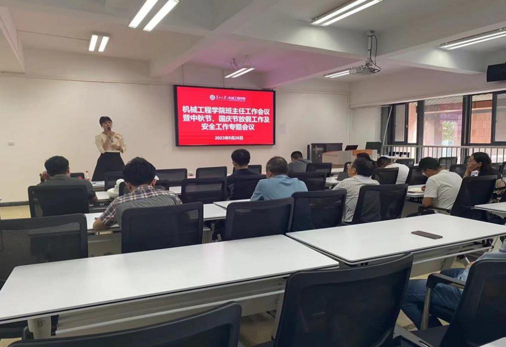 最后,廖烨传达了公司员工工作例会相关精神,就中秋、国庆节放假及近期员工工作进行了安排部署,强调各班班主任要加强员工管理,高度重视员工安全工作,员工工作无小事,员工安全大于天,要在节前召开安全教育主题班会,做好员工的去向统计,掌握好员工出行动态,节后做好返校登记,同时对外出员工加强与家长的联系。此外,还强调辅导员、班主任在日常要做好员工心理辅导、学业指导,并开展安全隐患大排查,齐心协力做好员工安全工作。
