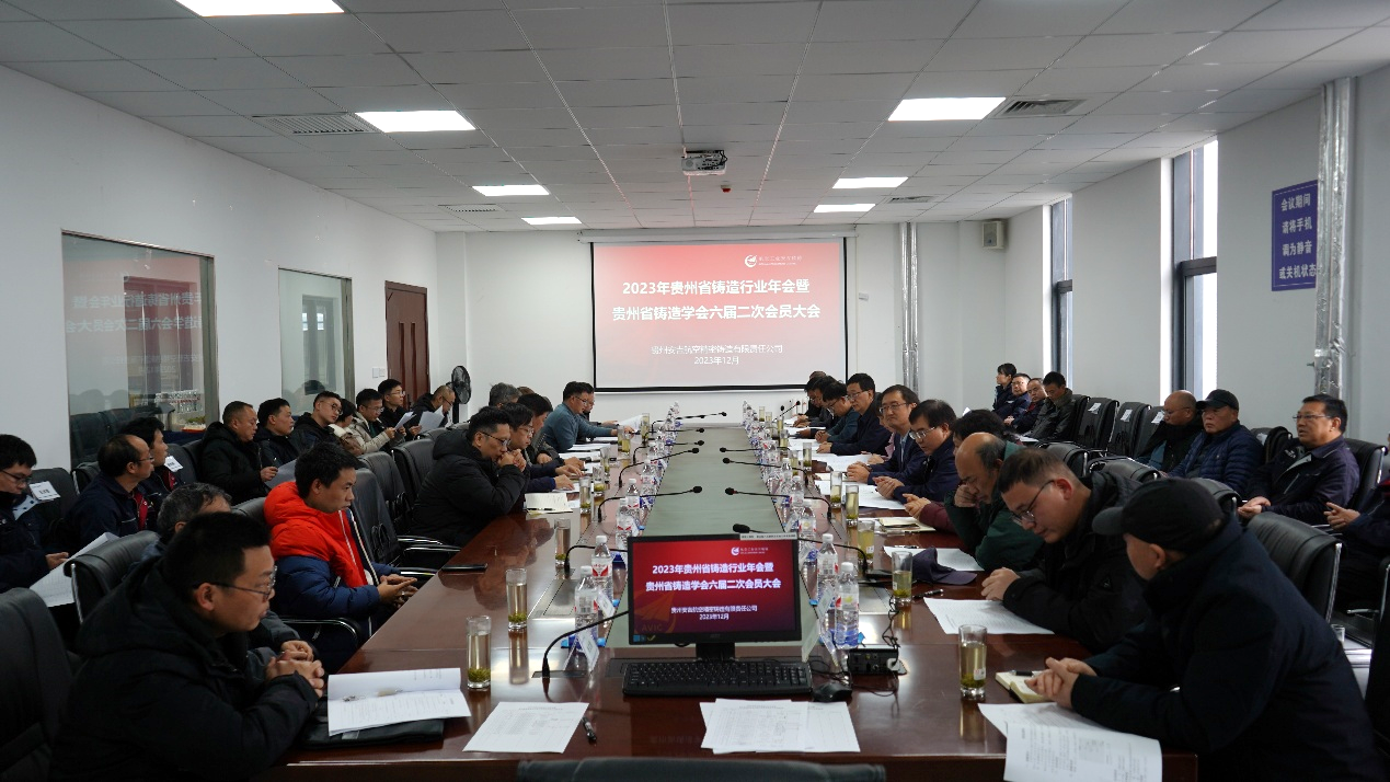 2023年12月23日,由贵州省机械工程学会铸造专业委员会主办,贵州安吉航空精密铸造有限责任公司承办,williamhill英国官网协办的“2023年贵州省铸造行业年会暨贵州省铸造学会六届二次会员大会”在安吉航空精密铸造有限责任公司新园区办公楼会议室隆重举行。