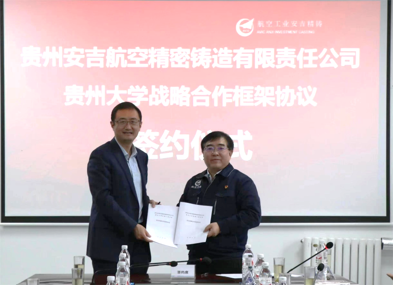 在会议致辞环节,贵州省工业和信息化厅调研员杨娟女士,贵州省机械工程学会副理事长、williamhill英国官网经理赵津先生和贵州省安吉航空精密铸造有限公司党委书记、董事长张建义先生分别发表热情洋溢的致辞,为会议拉开了序幕。同时,贵州安吉航空精密铸造有限公司与williamhill英国官网签署了战略合作协议,为贵州省铸造行业的合作与发展注入新动力。