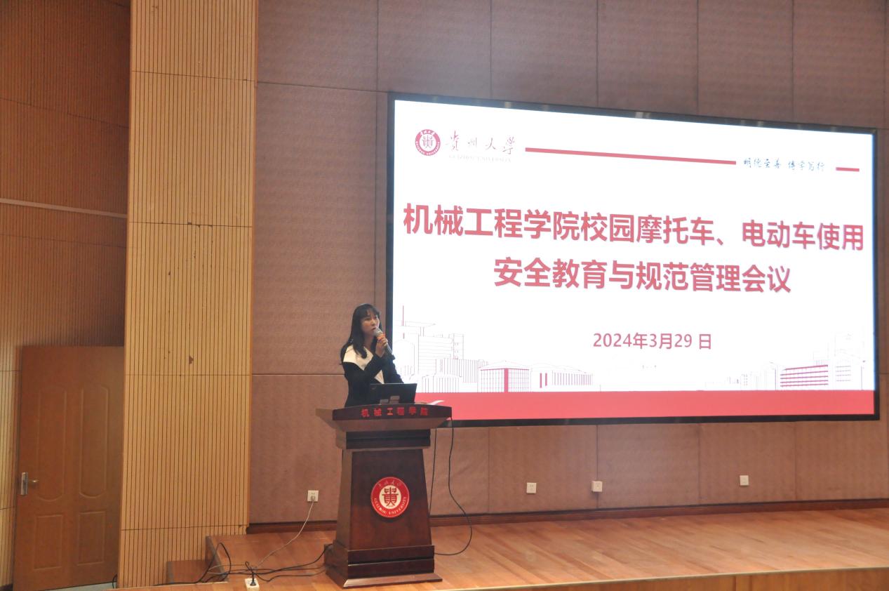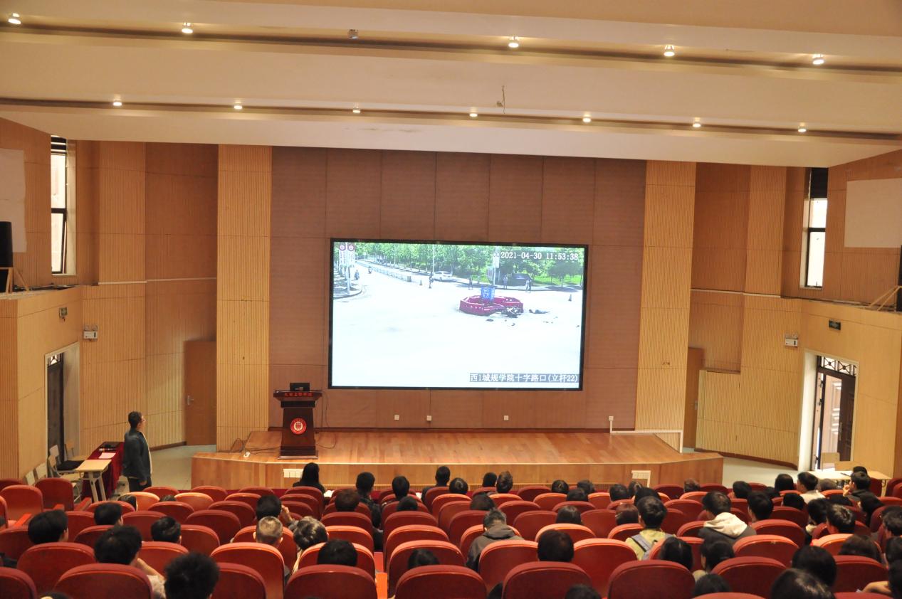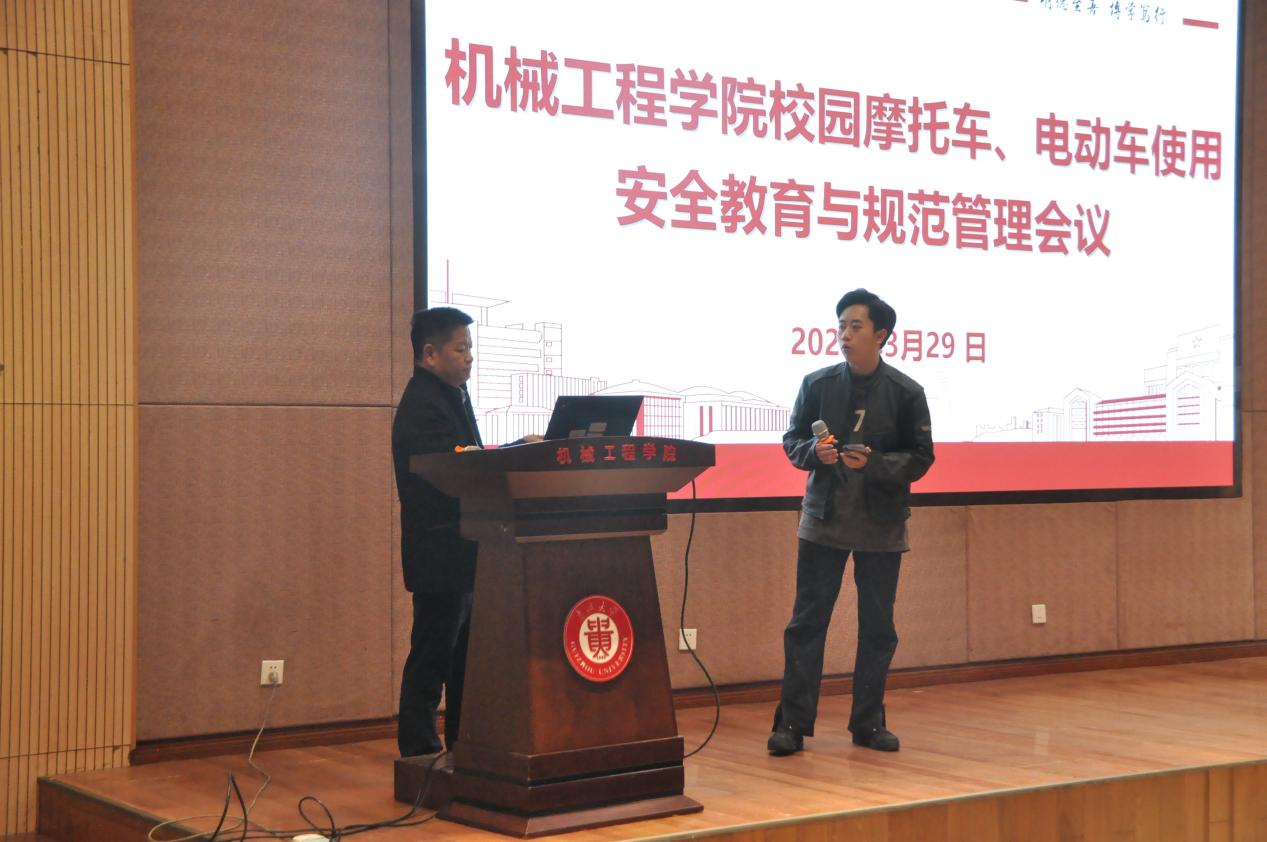 会上播放由摩托车、电瓶车引发的校园交通安全事故视频,保卫处副处长代祥社强调了规范校园摩托车、电瓶车的必要性和紧迫性,对车辆停放地点、电瓶车充电地点和校园通行证发放及车辆管理等同学们重点关注的问题进行了详细的讲解。在交流环节为同学们答疑解惑。