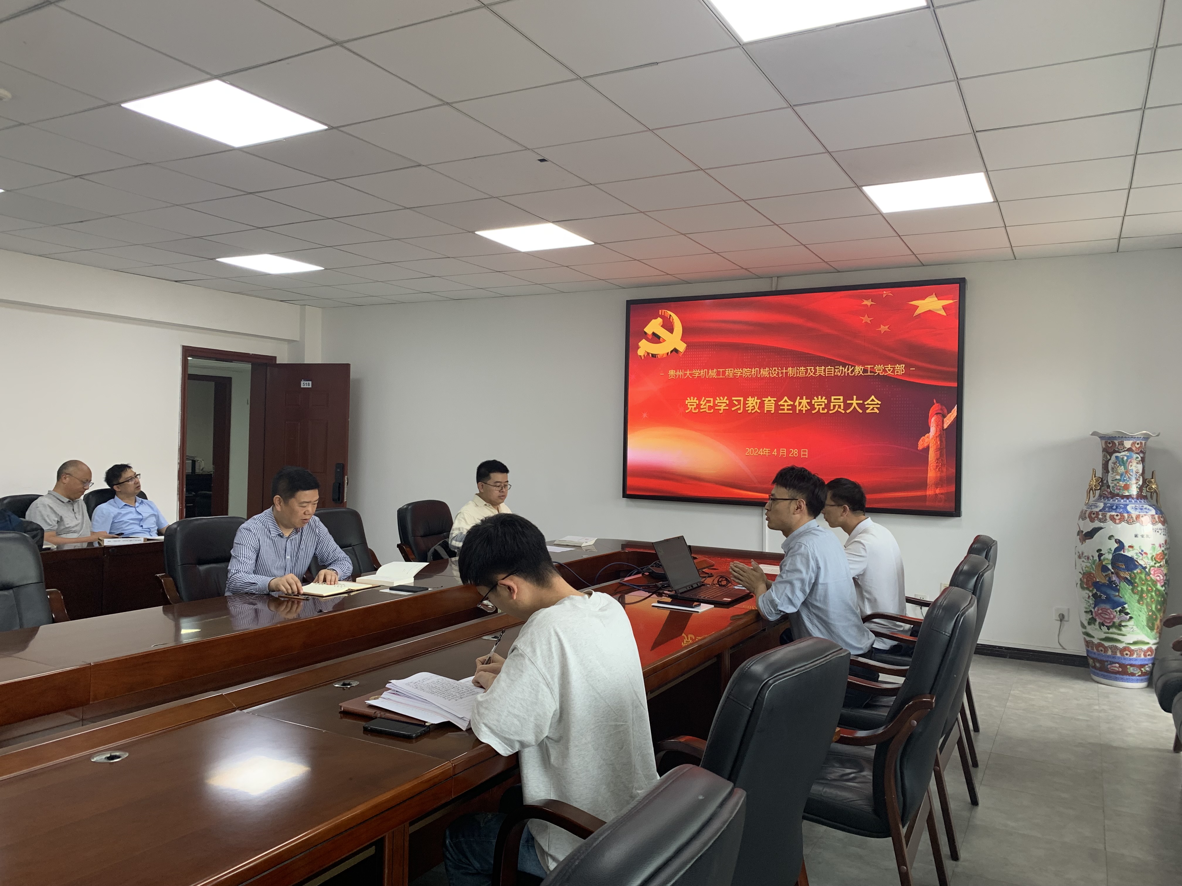 2024年4月28日,机械设计制造及其自动化教工党支部举行了党纪学习教育全体党员大会。本次大会由党支部书记主持,全体党员踊跃参加。首先,大会的第一议题是学习习近平总书记关于把党章和党规党纪学习教育作为党性教育的重要内容的论述。接着,详细传达了中共中央办公厅印发的《关于在全党开展党纪学习教育的通知》中关于加强党纪学习建设的相关精神,并学习了总书记关于党纪学习教育的重要讲话和重要只是精神。然后,支部书记带领大家逐章逐字学些了新修订的《中国共产党纪律处分条例》。最后,结合实际案例,进行了警示教育,生动讲解了党章党规党纪的重要性。通过专题报告、案例剖析和现场讨论等多种形式,全体党员深入学习了党纪知识,深刻认识到遵守党纪党规的重要性和紧迫性,进一步增强了遵纪守法的自觉性。