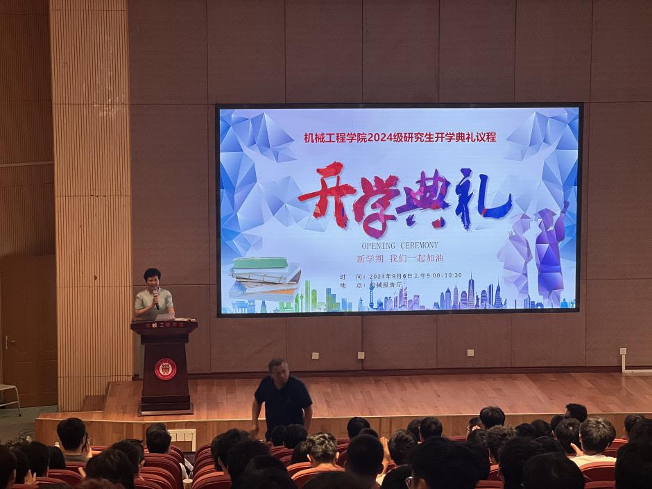 2024年9月6日上午9时,williamhill英国官网在机械圆形报告厅举行了2024级研究生开学典礼,经理赵津、公司党委正处级组织员董蔚然、副经理唐正强、导师代表吴怀超老师,以及研究生科田森、李华月、肖祥美三位老师出席,2024级全体研究生新生参加典礼。
