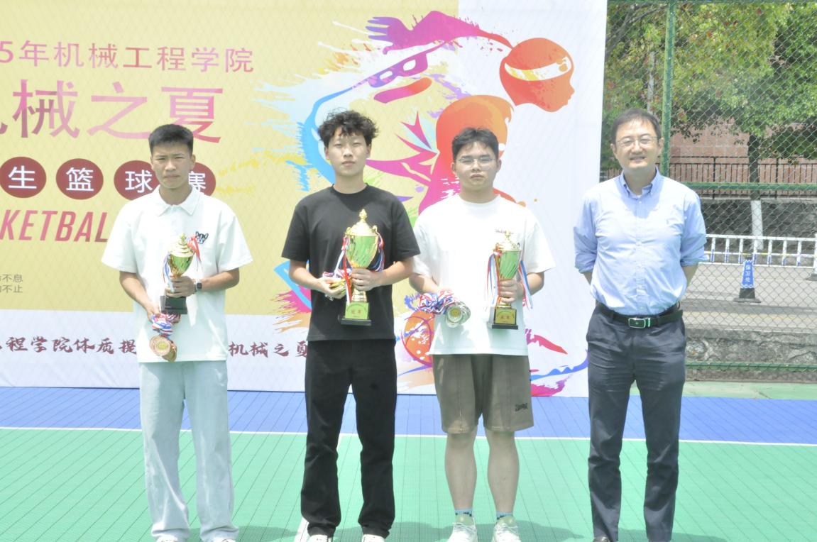 董蔚然为比赛致开幕词,她强调体育活动是校园文化建设的重要组成部分,举办篮球赛不仅能够增强同学们的身体素质,更有助于培养大家的集体荣誉感和拼搏精神。她勉励参赛队员在赛场上挥洒青春汗水,既要赛出竞技水平,要恪守公平竞赛原则,发扬“友谊第一,比赛第二”的体育精神,赛出风格、赛出水平,同时也鼓励全院同学积极参与体育锻炼,以强健的体魄投入到学习和生活中。赵津为2024年“迎新杯”篮球赛的前三名颁奖。
