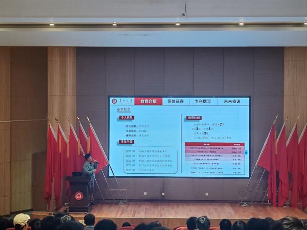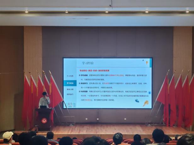 榜样领航,传递奋进力量。经验分享环节,唐雍、俞天鑫、杜立杰、王占坤、米小红5名国家奖学金获得者依次上台,围绕学业规划、科研创新、竞赛经验、时间管理、社会实践等方面分享有关经验与感悟。他们讲述了自身在专业学习中攻克难题的经历,鼓励同学们主动探索、勇于尝试,现场同学认真聆听,纷纷表示收获颇丰。
